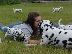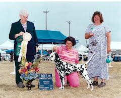 Now we were down to the final cuts. Tanner & Jennifer were in the front with the boys and Bindi and I in the middle with the girl cut. The judge made another cut (I think) and then got down to the final placements. He first pulled out a liver boy and put him on the other side of the ring, maybe the start of his Award of Merit's? Then he pulled his Winners Dog to go in front of the liver dog.... hmmmmm maybe that is his Best of Opposite and Best of Winners... That means it's going to be a bitch for Best of Breed. Funny how your brain flies! He stopped and looked at the girls again and then pointed to Bindi and said to go to the front of the line. OMG! Bindi always turns it up a notch every time she makes a cut, just like Mocha. So she was on auto pilot by then! I never had to touch her again. She just free stacked and wagged her tail!! Then the judge arraigned the Awards of Merit and then said something like "are you all waiting for something?" I don't remember just what he said... Then he looked at me and said "take them around" OMG!! I told Bindi to walk up and held on and away we went, she floated around the ring... then Rick pointed to us. I though I was going to fall down, I slowed down Bindi and grabbed her. She was sooo silly, lots of kisses! Then the hugs, lots of hugs!!! The brain really goes blank!! I hope there are some photos of us in the ring. Writing this sure helps me to remember what happened. But it really turns into a blur... I do remember LOTS of hugs tho!! Tanner got one of the 6 Awards of Merit. Good boy!!